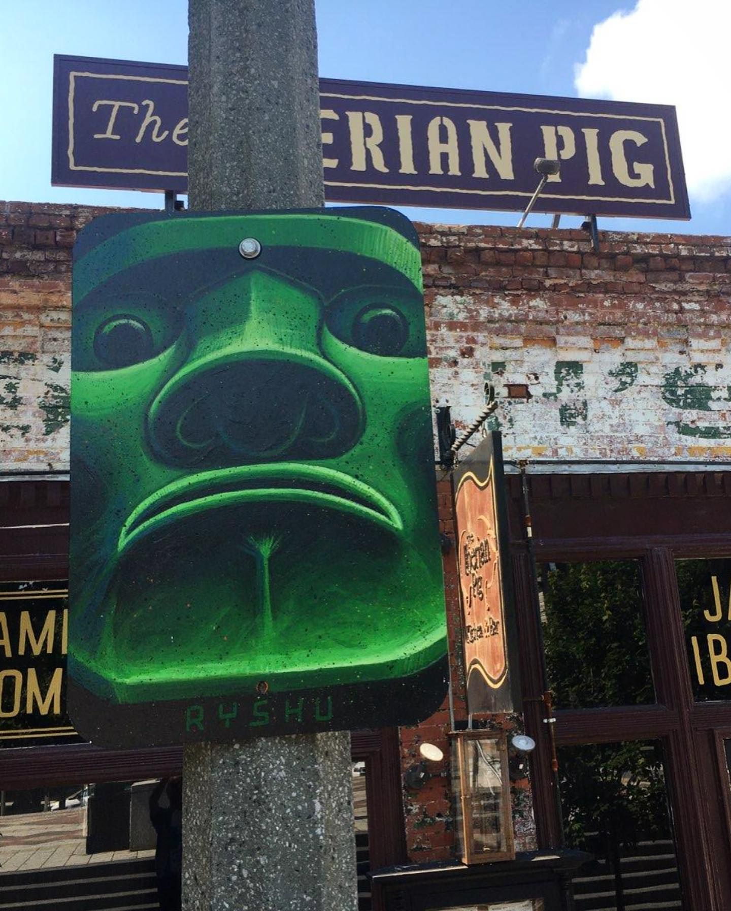 I painted this sign as part of the ongoing 'Look Up Decatur' street sign art project. The sign hung in Dowtown Decatur, Georgia until recently when it was stolen.