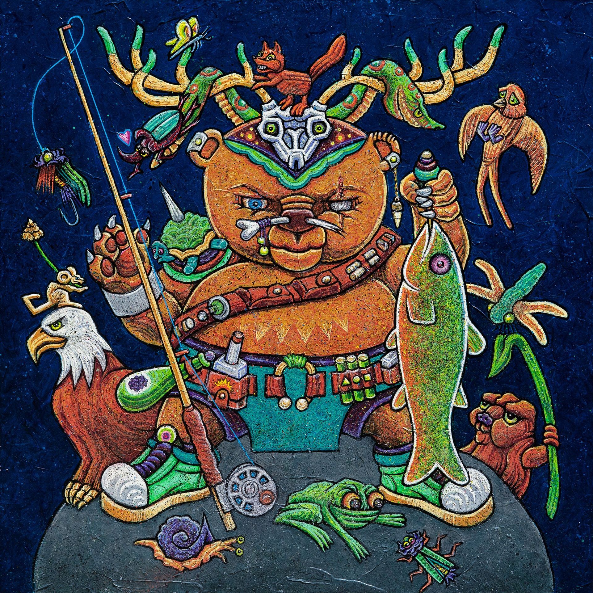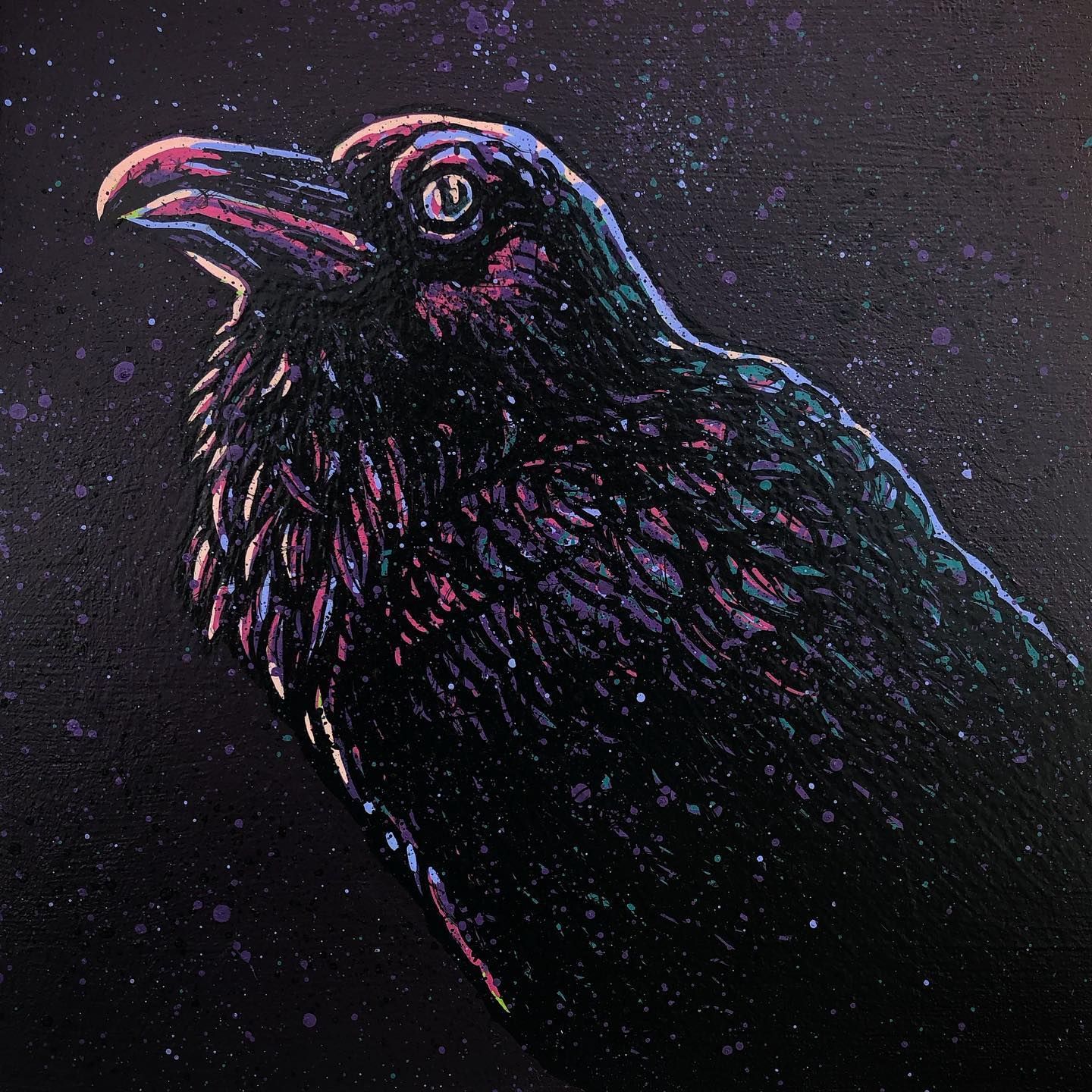 I used color to mimic the iridescence in the raven feathers. Acrylic on wood | 12'x12"