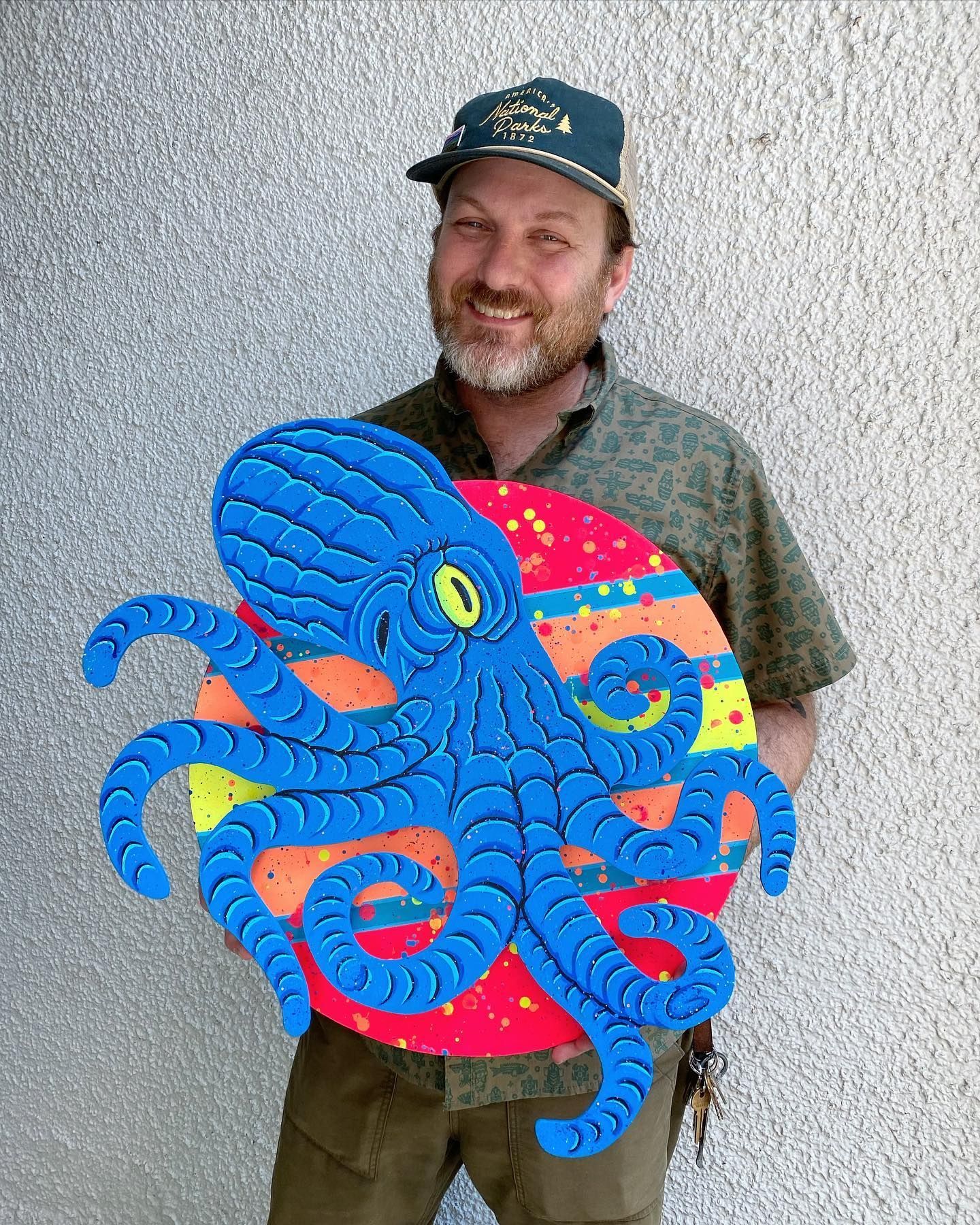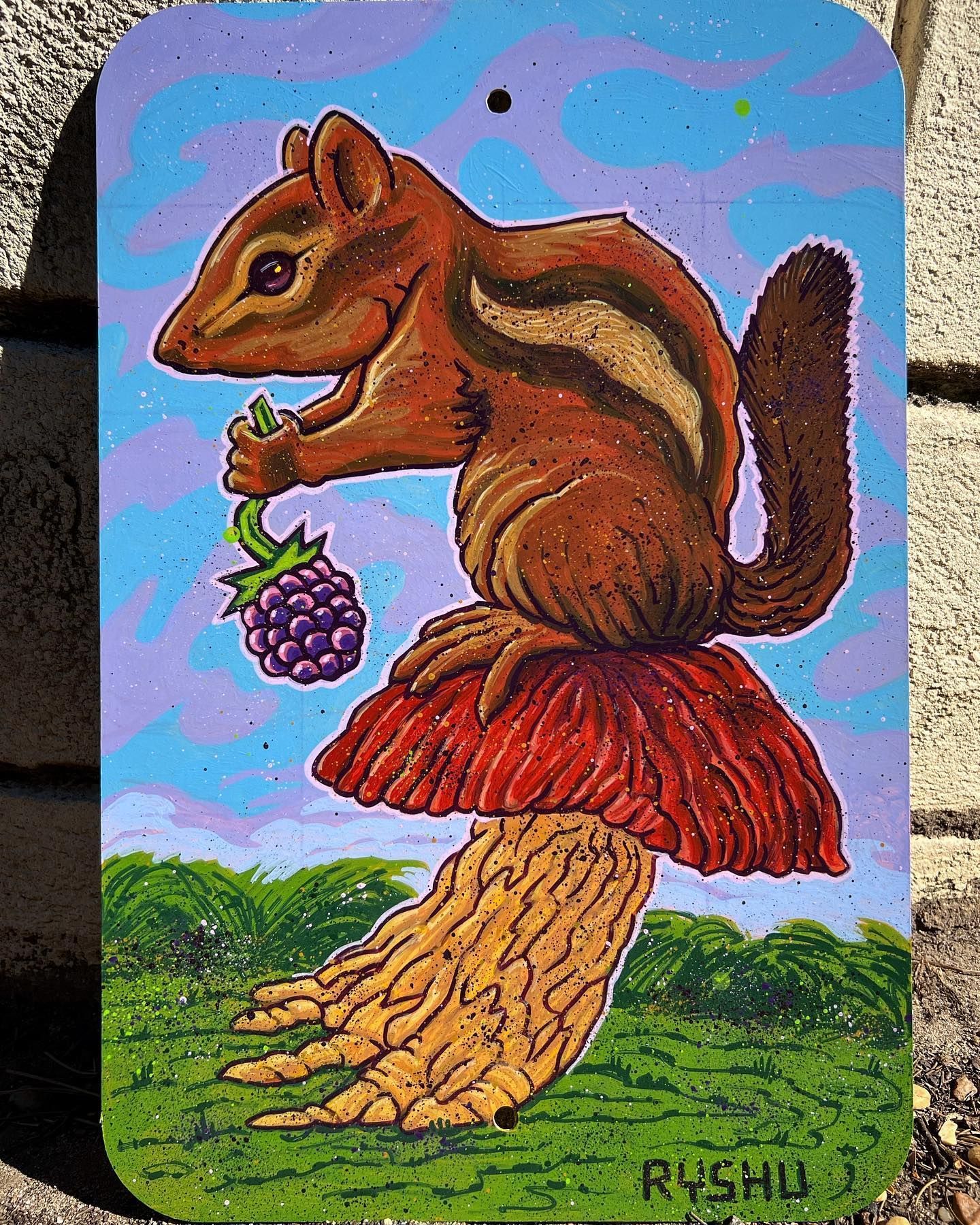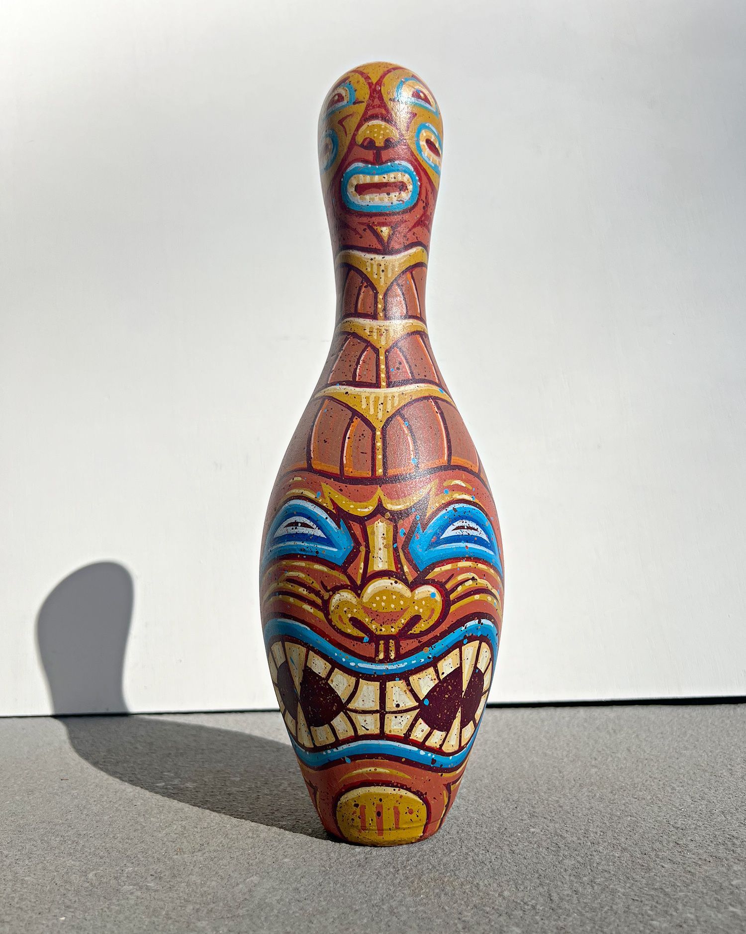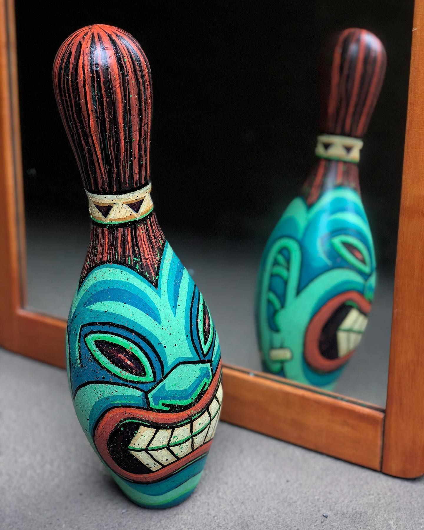 Featuring my sasquatch character. Painted for Bowling Pin art show at Comet Bowling circa 2014(?).