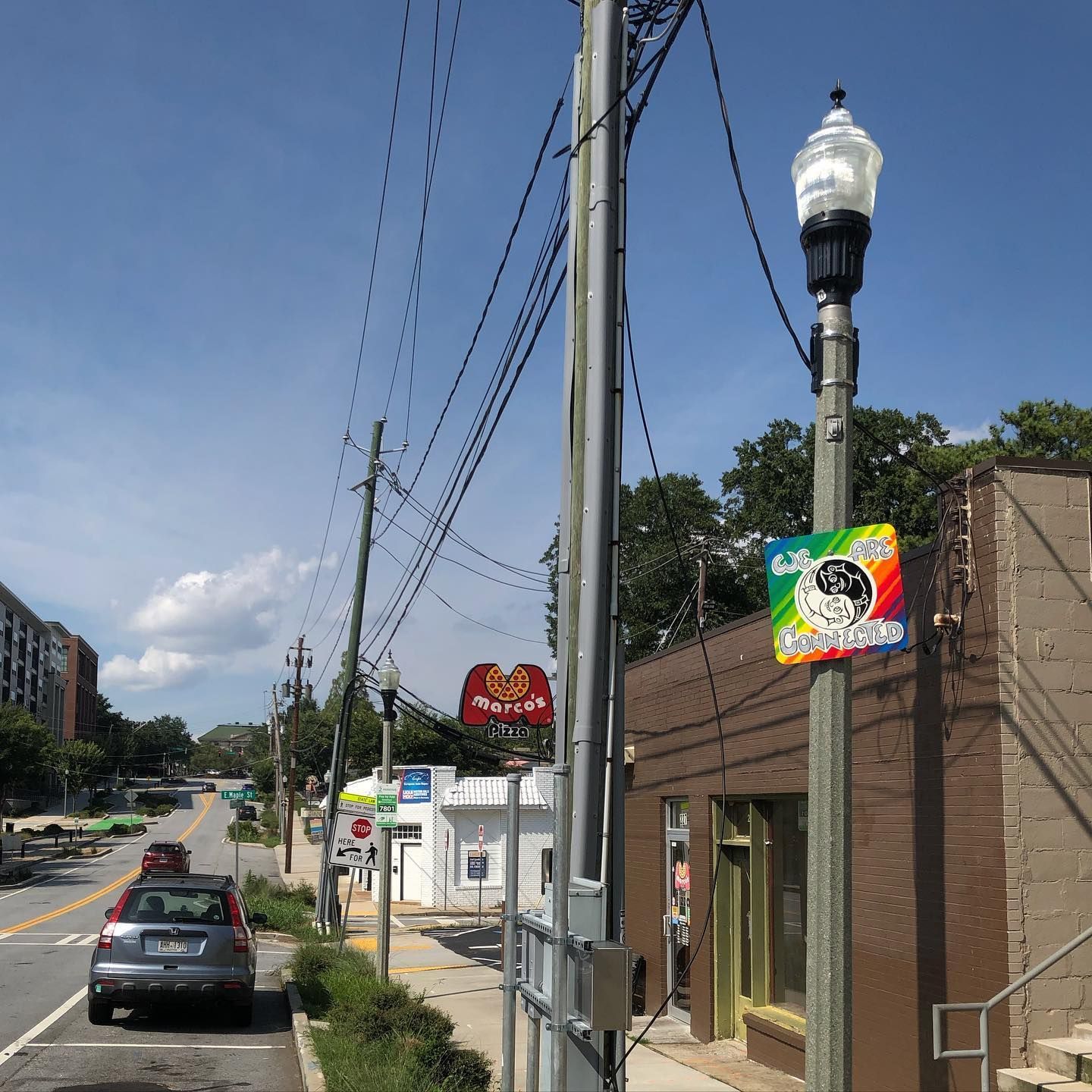 I painted this sign as part of the ongoing 'Look Up Decatur' street sign art project. The sign hung in Dowtown Decatur, Georgia until recently when it was stolen.