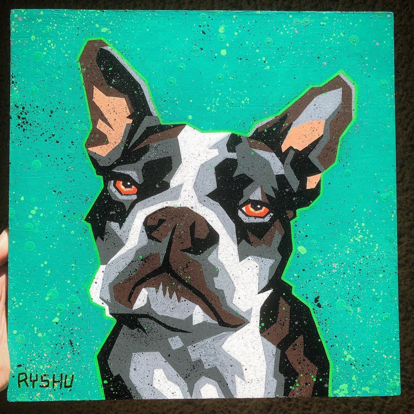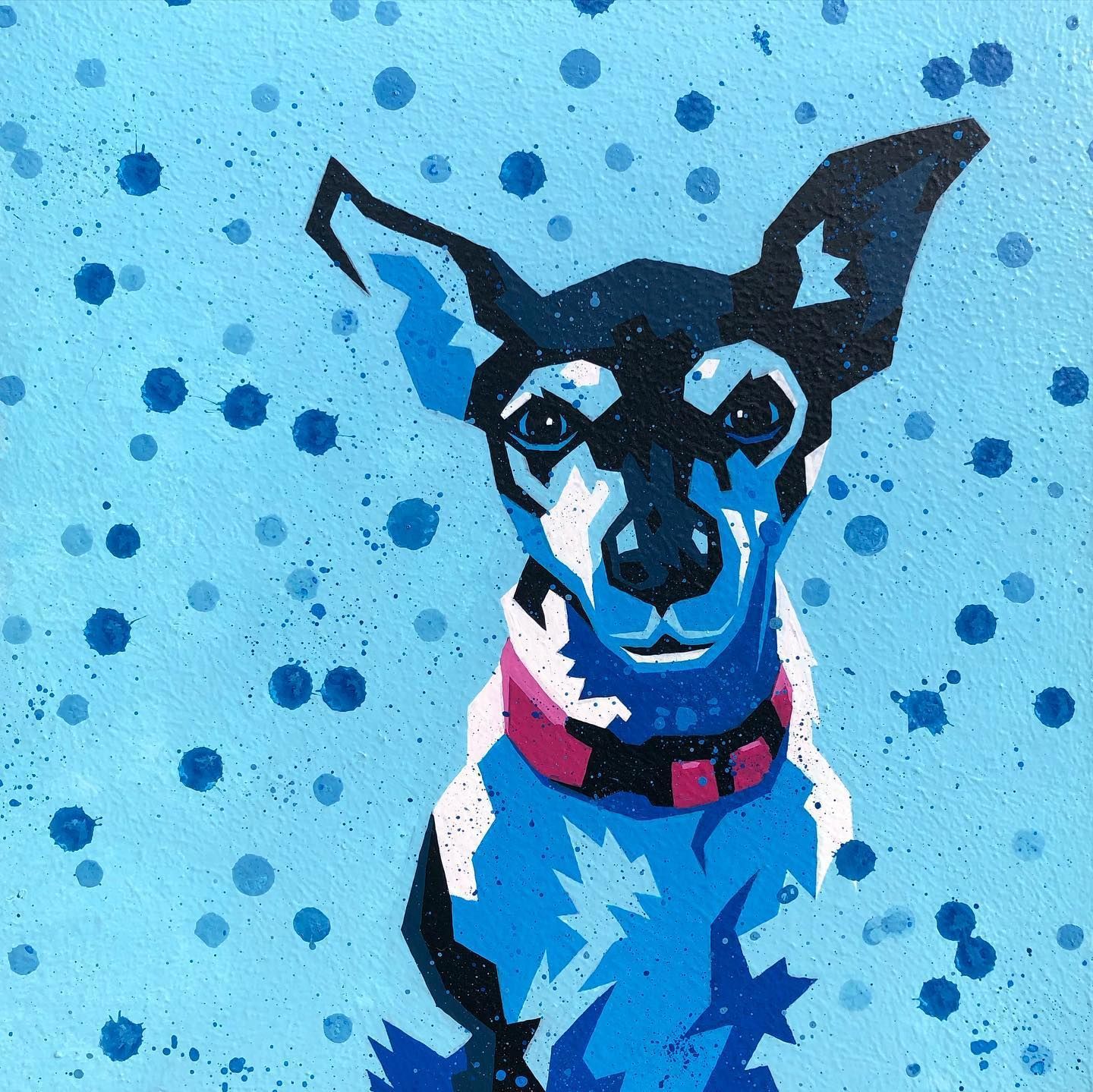 Commissioned painting. Abductee in artwork is modeled after their dog.