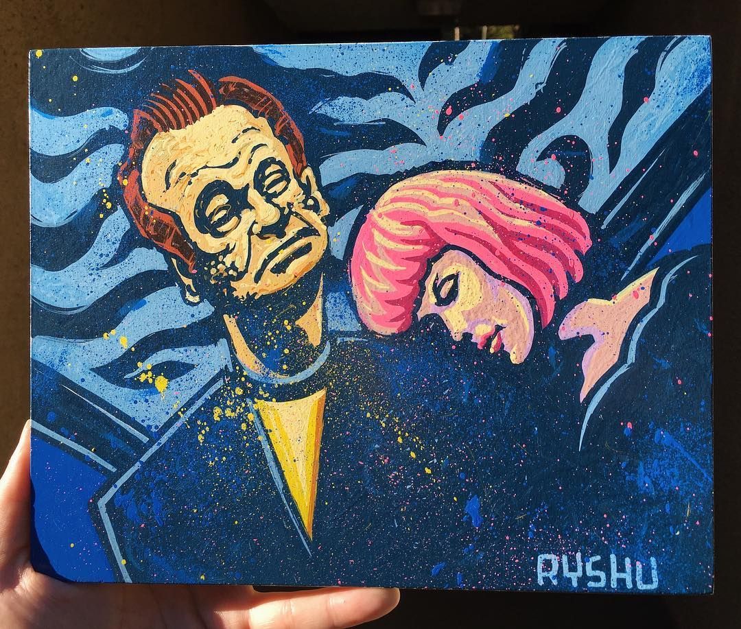 Inspired by "Lost in Translation" and painted for the Highlander's Ode To Love Gone Wrong - Valentines Art Show. Circa 2018