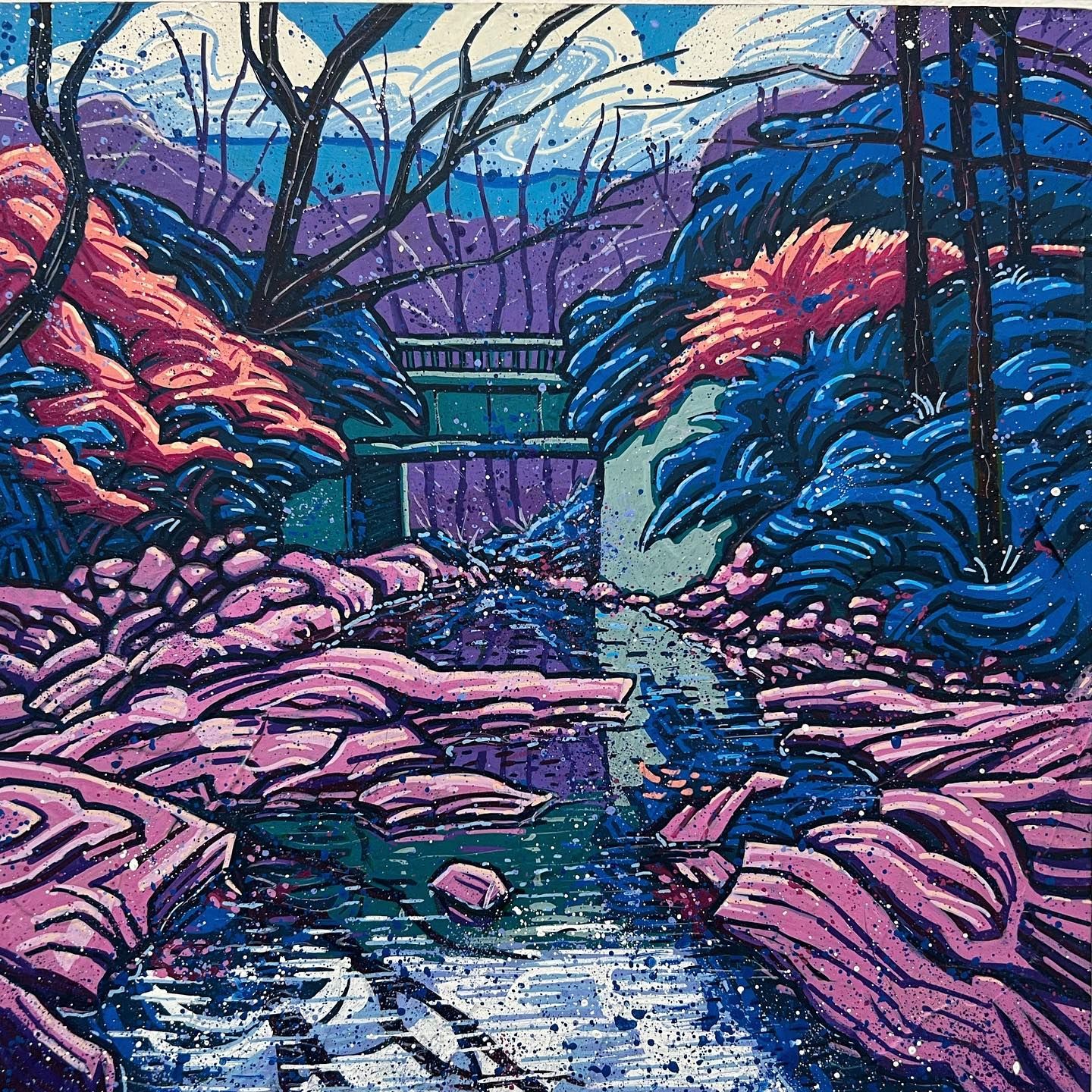 Experimental acrylic painting that I made on four connected birch panels. 2021