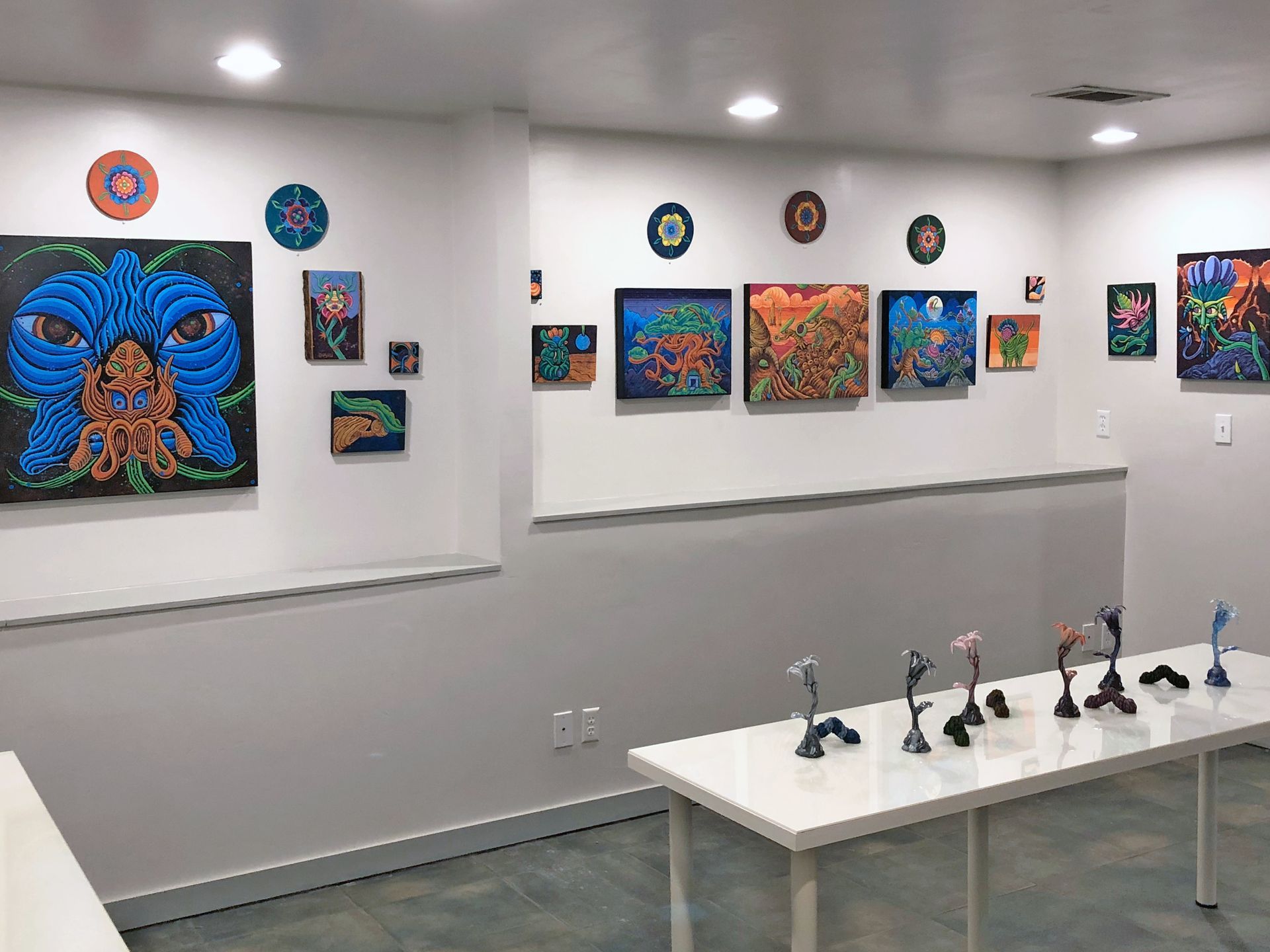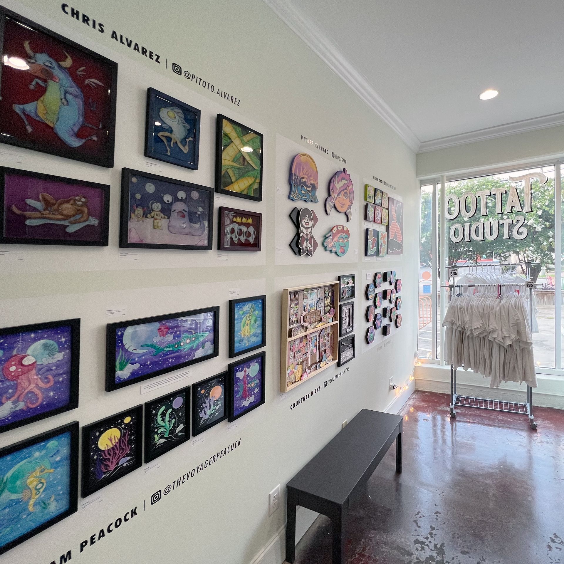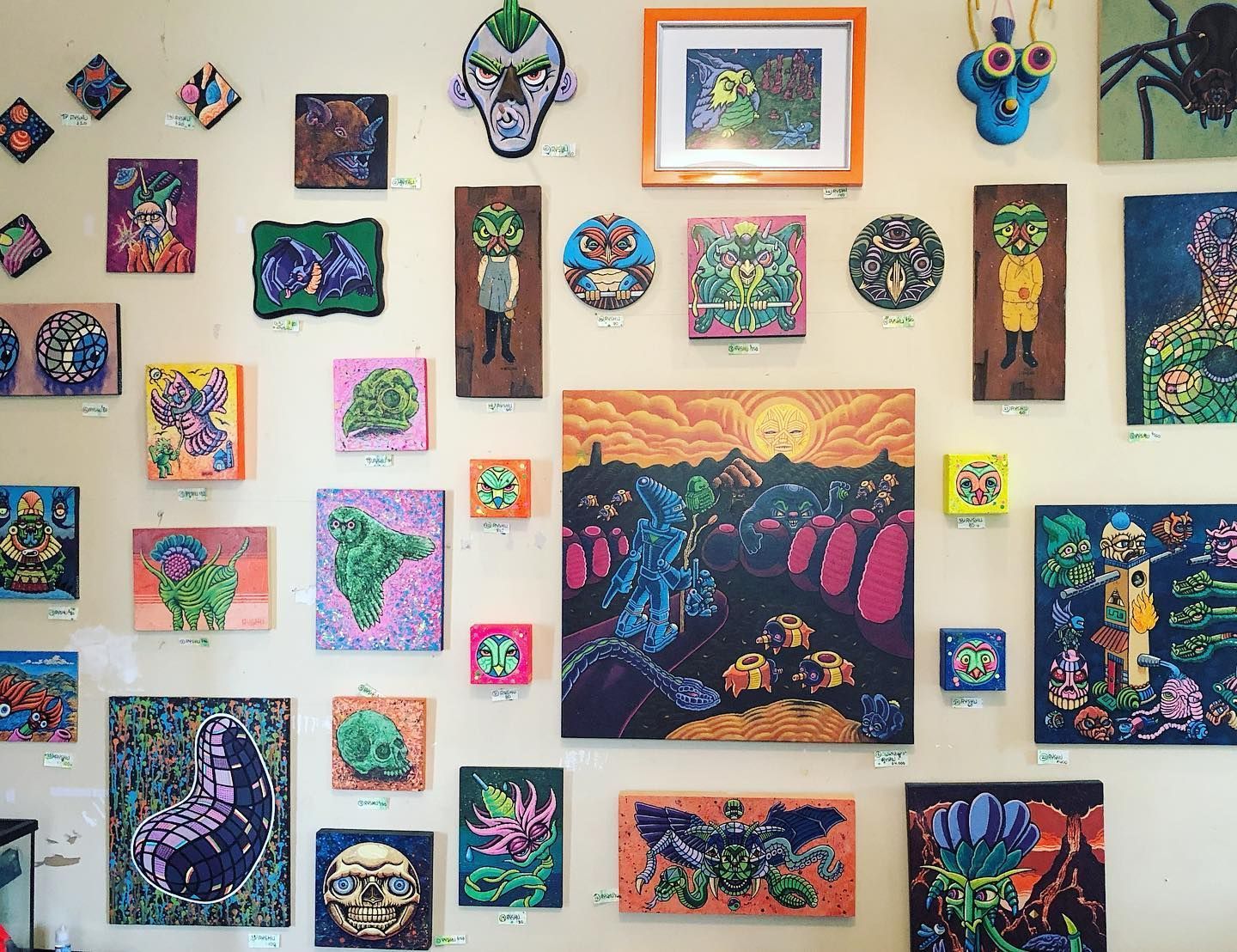 Wall of my art from an exhibition at Odd's End Oddity shop (now defunct). Circa 2018