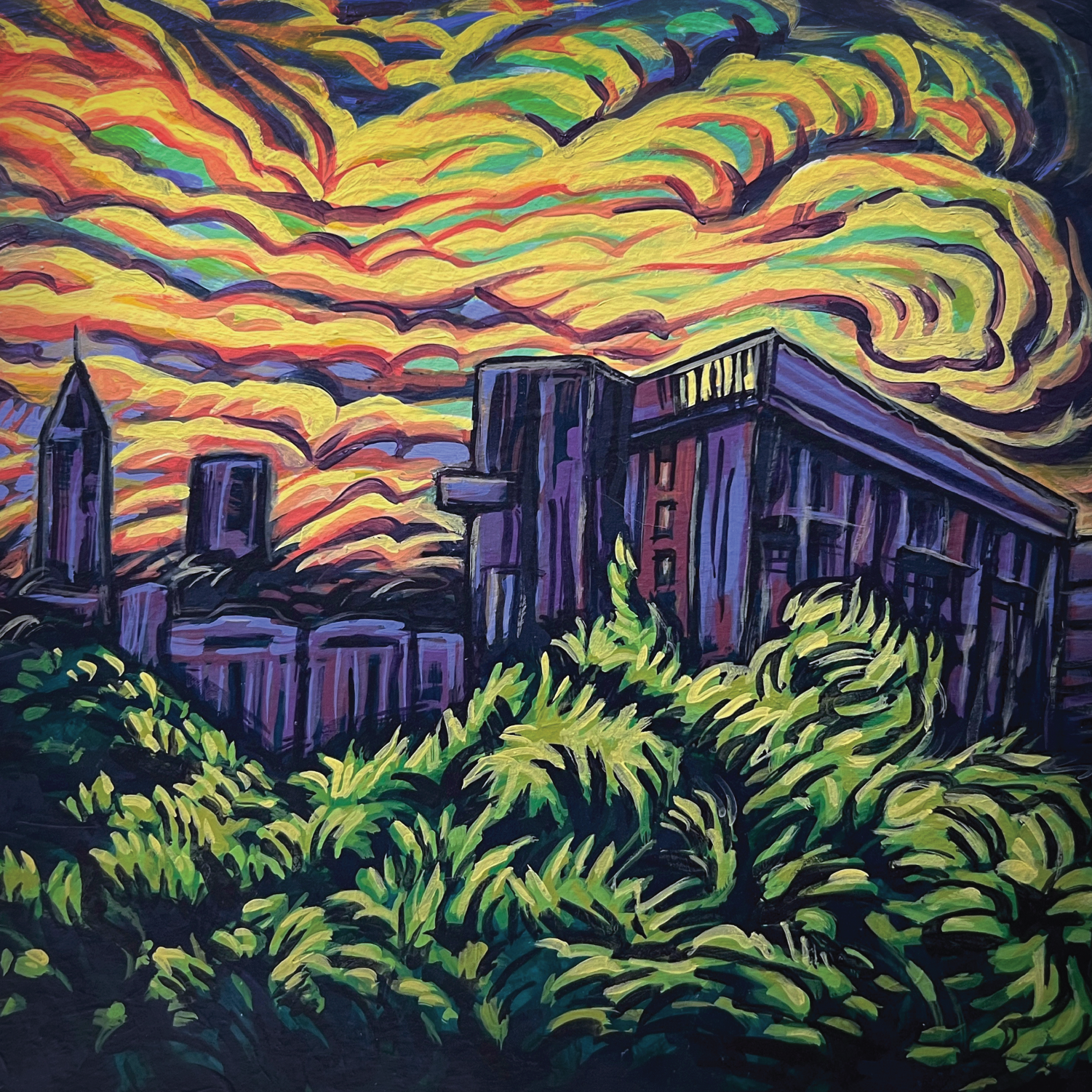 Painted for the Stacks Squares Public Art Project as a collaboration with Dan Curran.